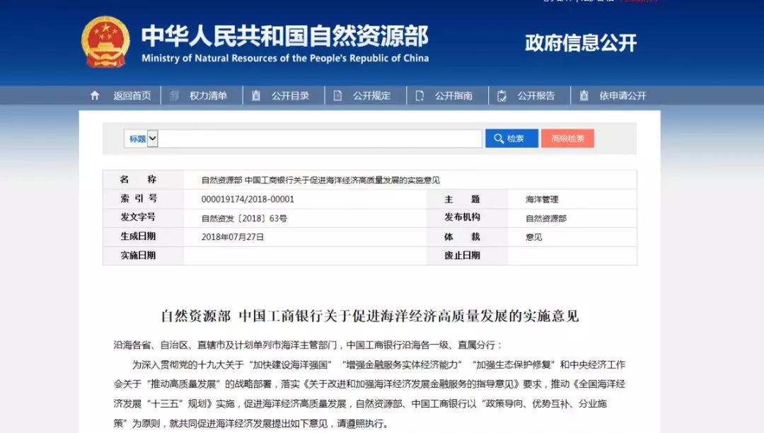 8月29日,自然资源部官网发布《自然资源部 中国工商银行关于促进海洋经济高质量发展的实施意见》?!兑饧访魅妨怂较乱徊酵贫Q缶酶咧柿糠⒄沟墓ぷ髂勘?、重点支持领域、重点区域及各区域支持方向、服务方式、合作机制等内容。
