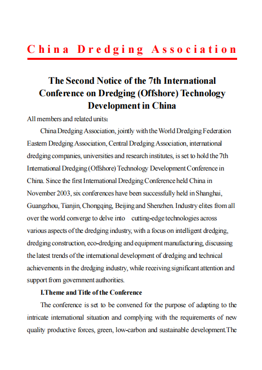 The Second Notice of the 7th International Conference on Dredging (Offshore) Technology Development in China
