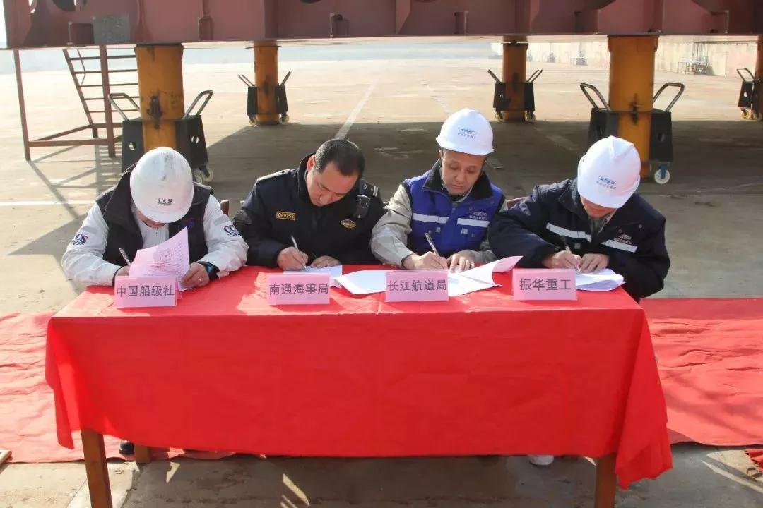 长江航道局、振华重工、中国船级社、南通海事局等相关单位负责人出席仪式。