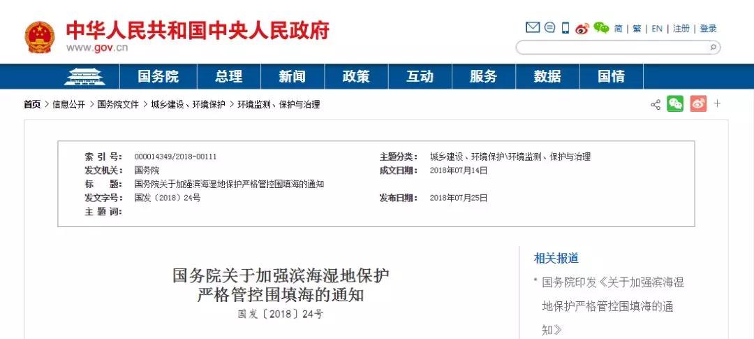 2018年,最受行业关注的无疑是被称为“史上最严”的围填海管控。今年一月初,中国海洋报记者从国家海洋局围填海情况新闻发布会上获悉,结合国家海洋督察整改工作,国家海洋局将聚焦“十个一律”,“三个强化”,采取史上最严围填海管控措施;七月中旬,国务院正式印发《关于加强滨海湿地?;ぱ细窆芸匚詈5耐ㄖ罚ㄖ魅?,完善围填海总量管控,严格审批程序;取消围填海地方年度计划指标,除国家重大战略项目涉及围填海的按程序报批外,全面停止新增围填海项目审批。