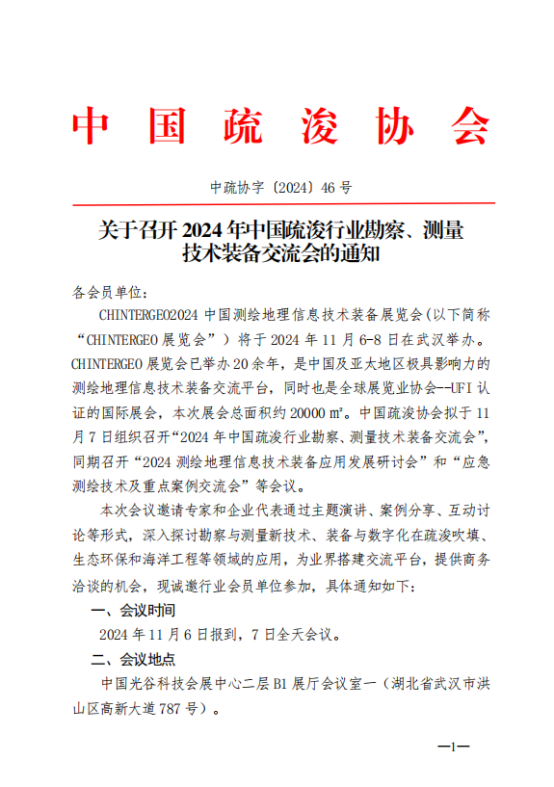 关于召开2024年中国疏浚行业勘察、测量技术装备交流会的预通知