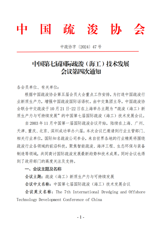 中国第七届国际疏浚(海工)技术发展会议第四次通知