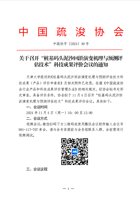 关于召开“桩基码头泥沙回淤演变机理与预测评估技术”科技成果评价会议的通知