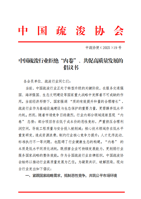 中国疏浚行业拒绝“内卷”、共促高质量发展的倡议书