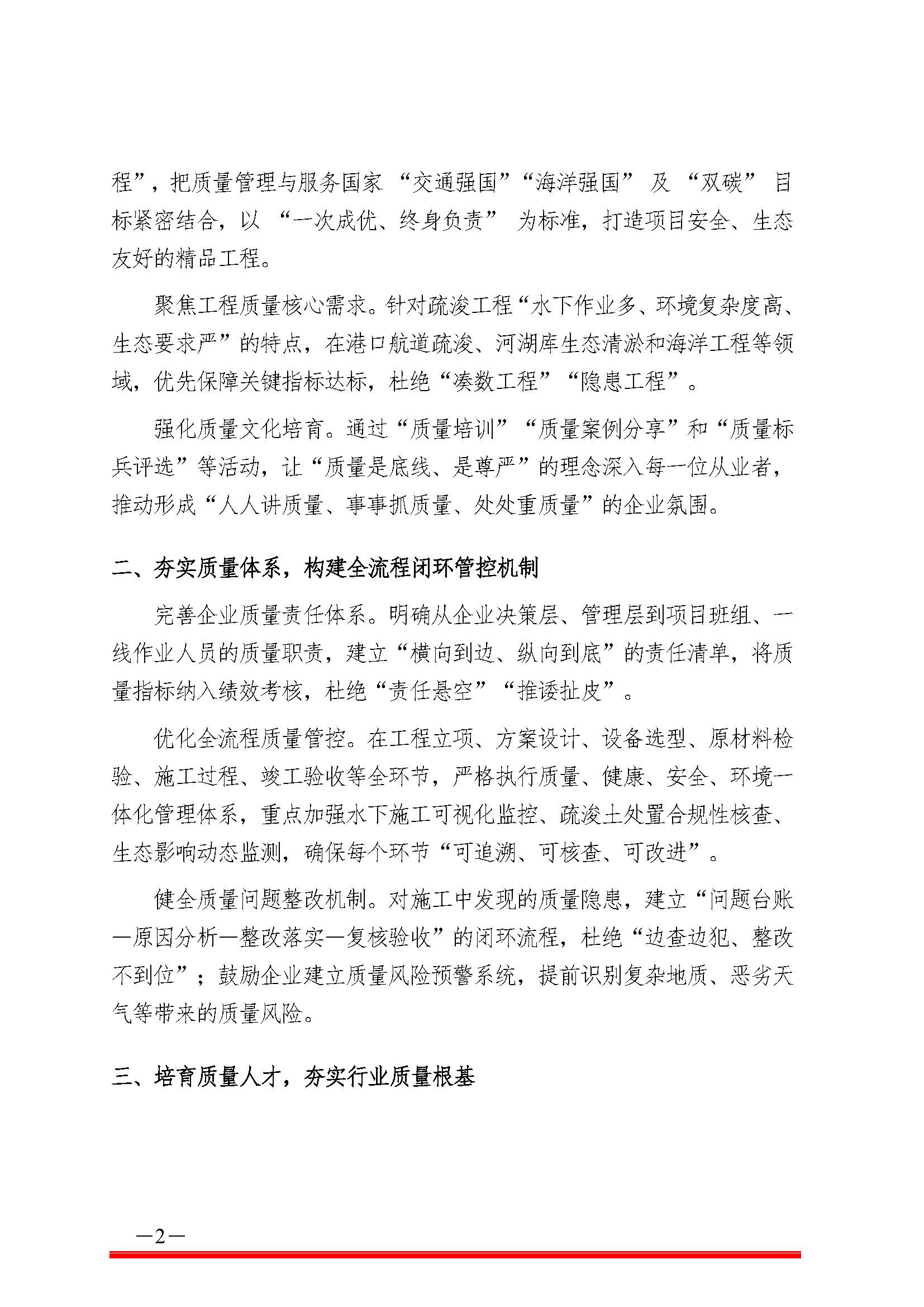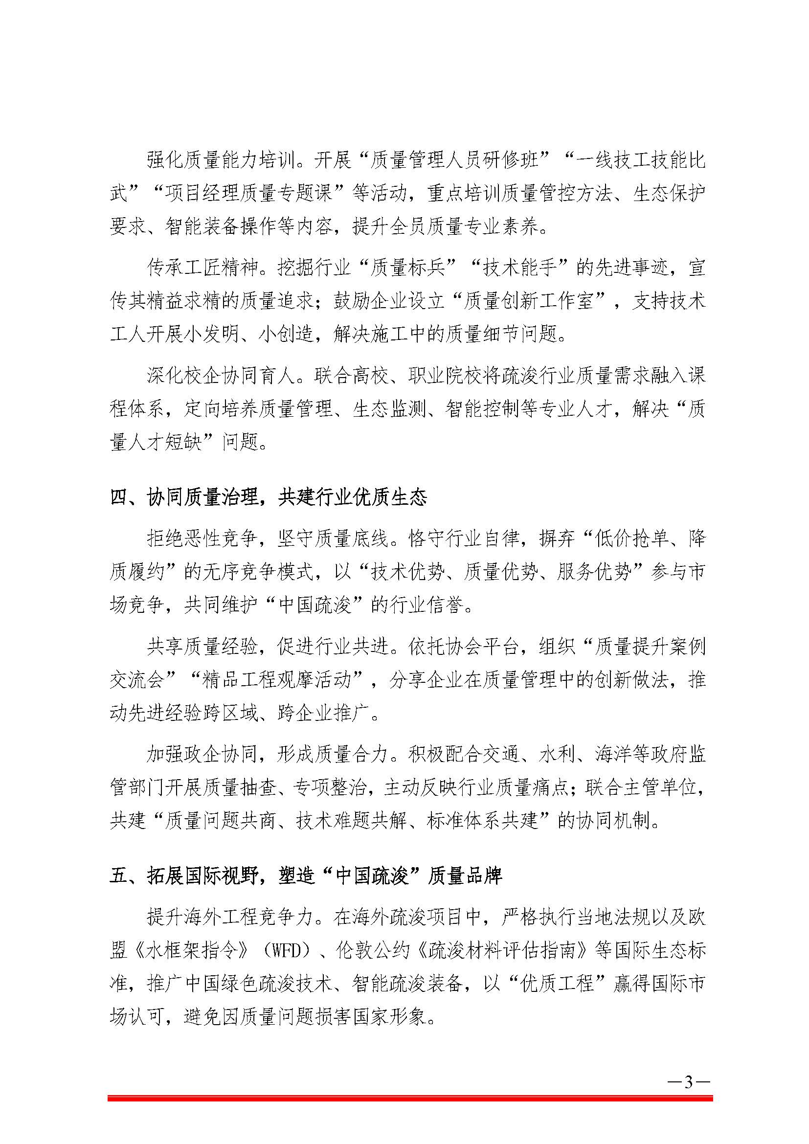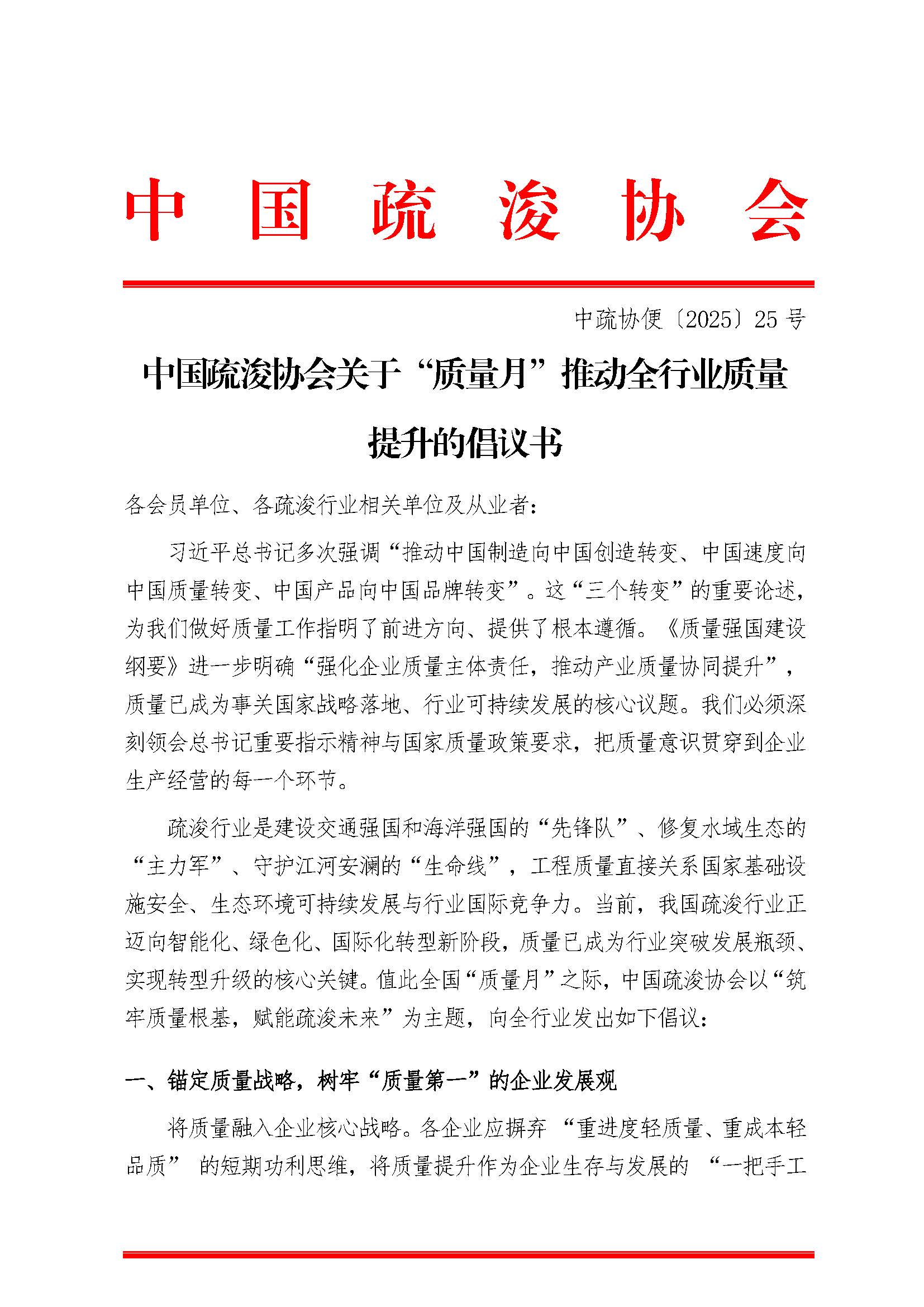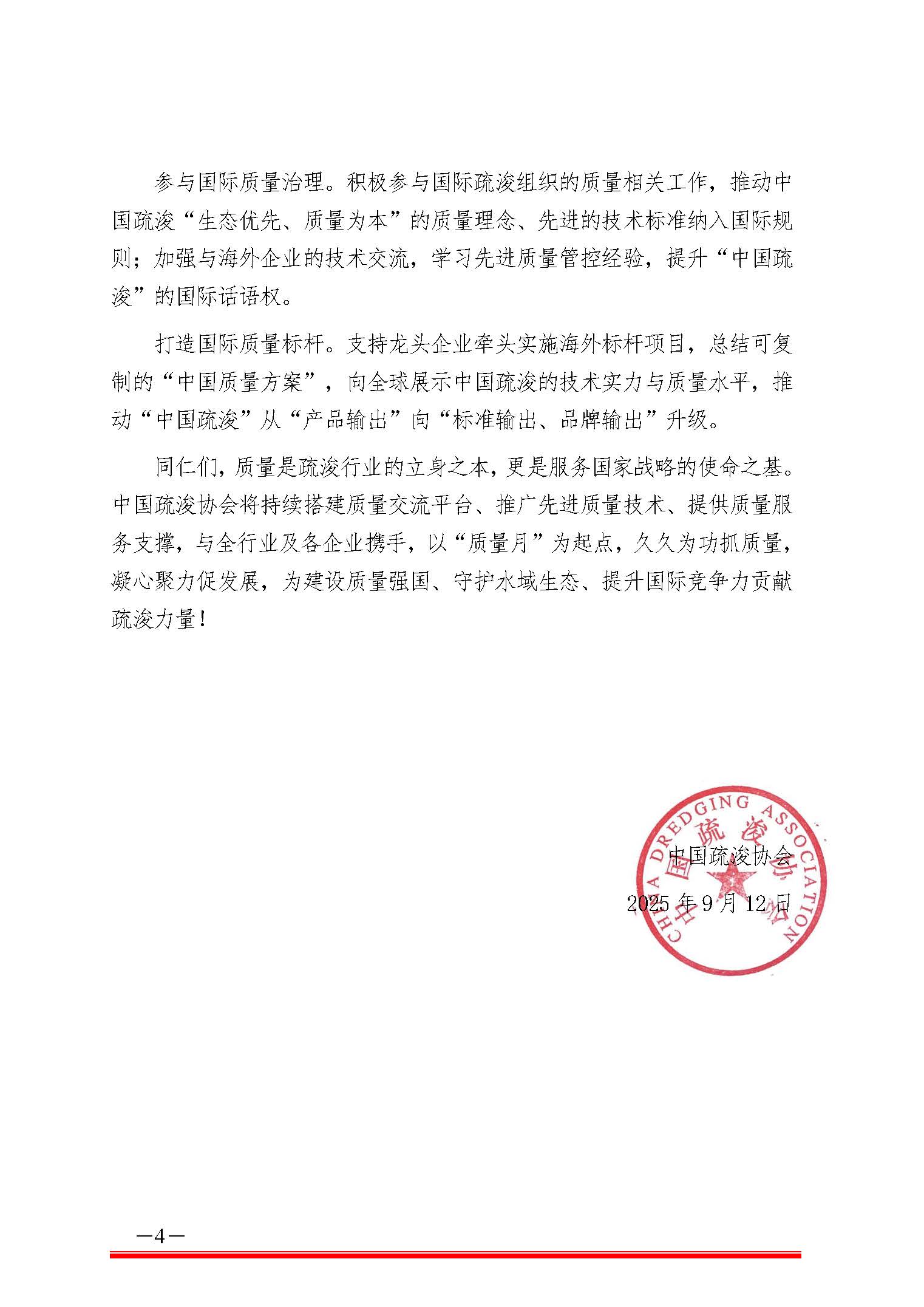 中国疏浚协会关于“质量月”推动全行业质量 提升的倡议书