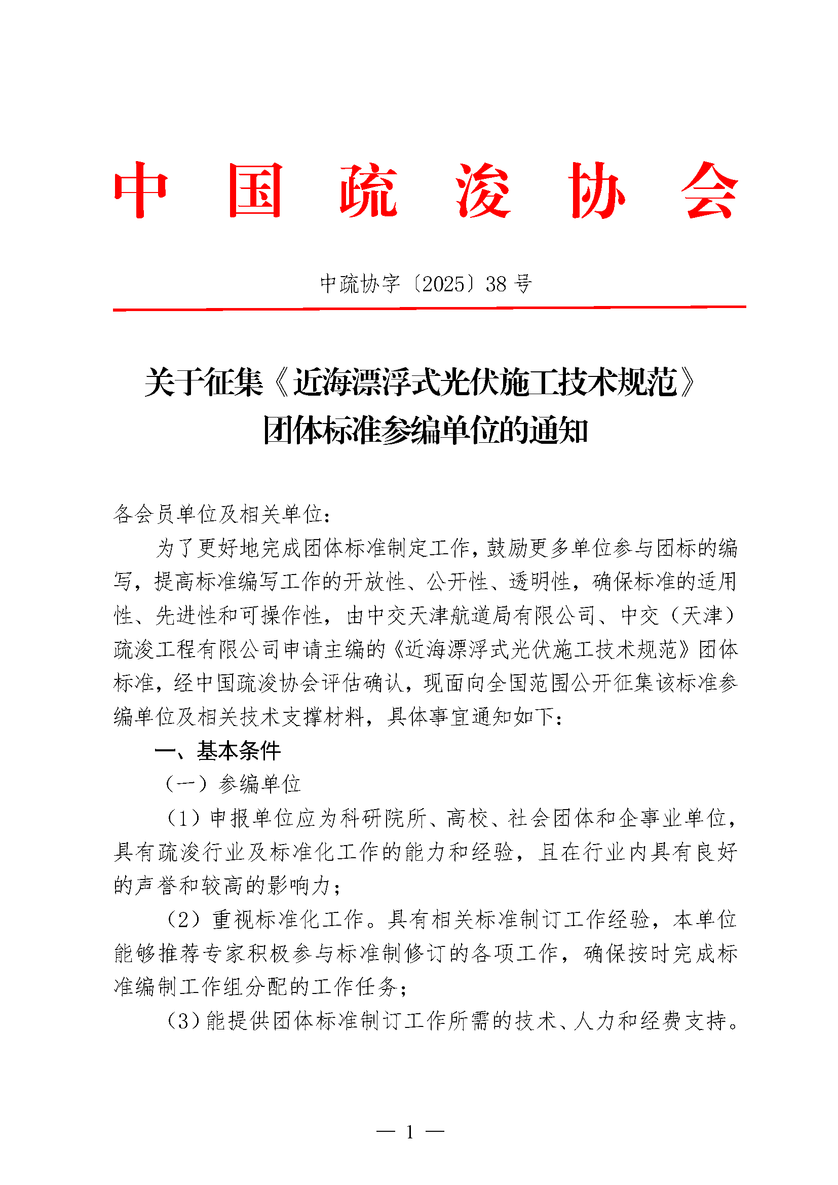 关于征集《近海漂浮式光伏施工技术规范》团体标准参编单位及相关技术材料支撑的通知